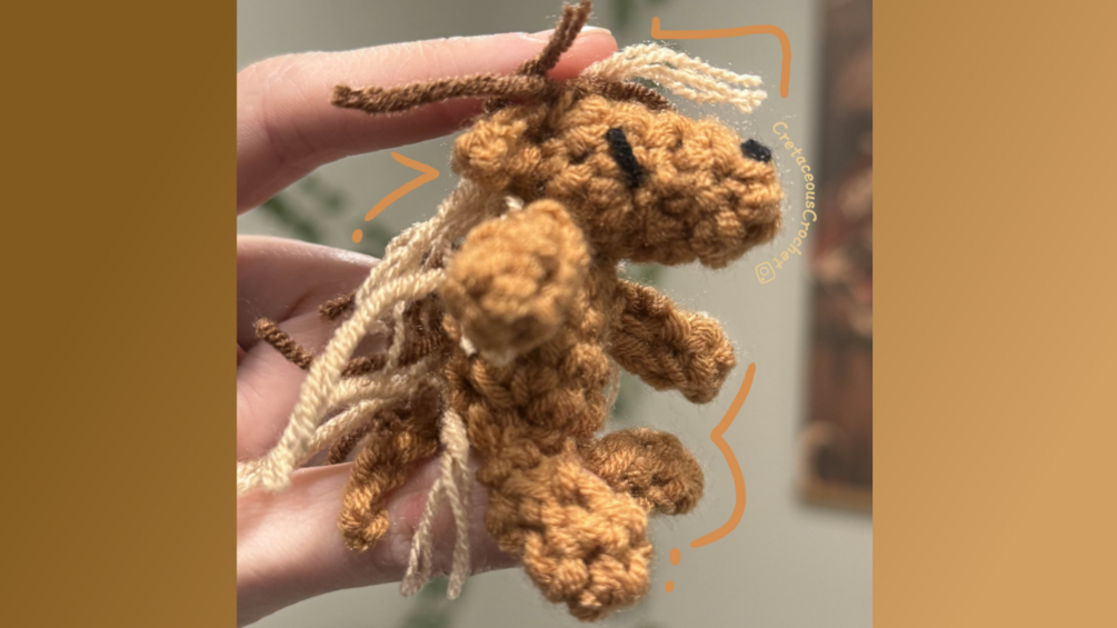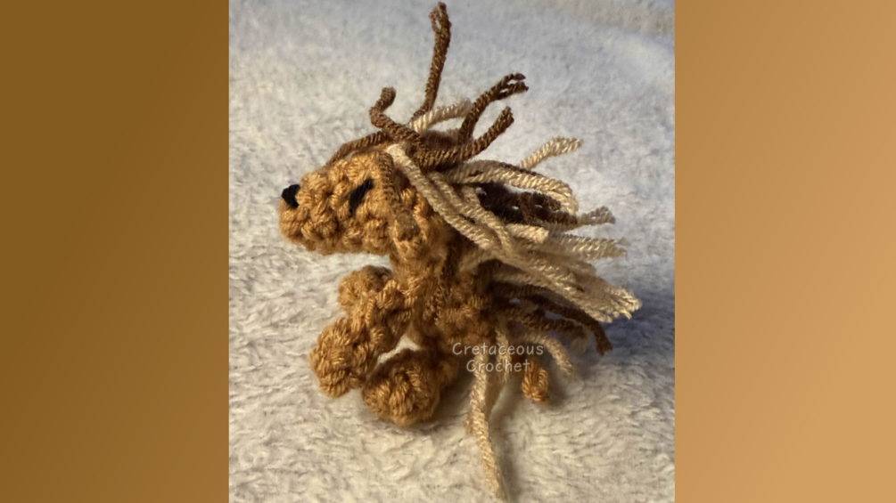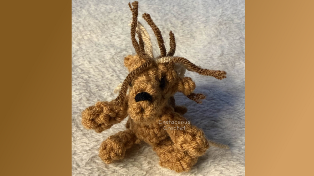 This tiny hyaenodon features loose, pose-able limbs for a soft, floppy personality that’s great for sitting, dangling, or striking a tiny pose! The pattern stays beginner-friendly with clear, step-by-step instructions. Use cotton yarn for a clean look or fuzzy yarn for a soft plush. It fits in your palm, works perfect as a key chain, and is almost guaranteed to multiply on your desk before you know it.