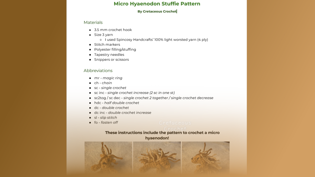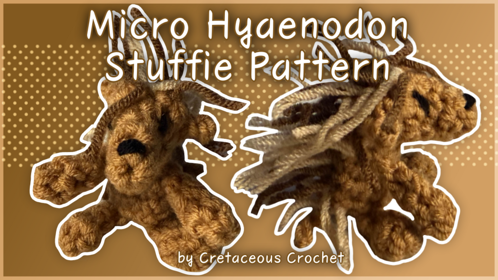 Digital PDF pattern to crochet a micro hyaenodon plush.