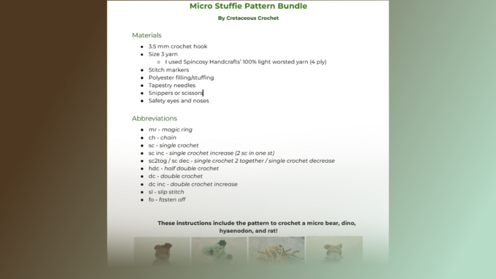 Digital PDF file to crochet four variants of micro stuffed animals.