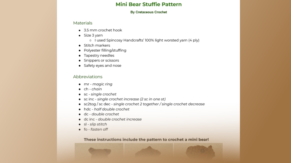 Mini Bear Stuffie Pattern